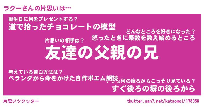 | ヘコむあだ名 | 『ラクふぇ~』『牛乳』『ラクお』 |