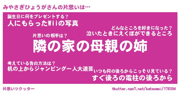 | ヘコむあだ名 | 『みやふぇ~』『酢こんぶ』 |