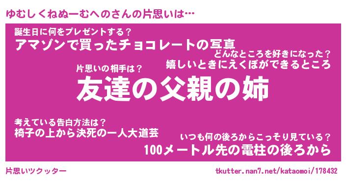 | ヘコむあだ名 | 『ゆむにゅー』『なまこ酢』 |