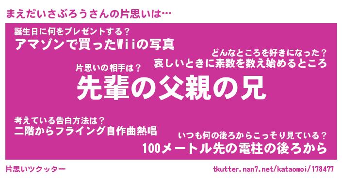 | 胡散臭い通販商品みたいなあだ名 | 『モテモテ間違いなし水晶球…その名も「まえだいさぶろう」』 |