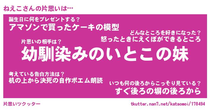 | 意味不明あだ名 | 『ペロリンねえこ』『ねえこフォーエバー』 |