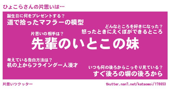 | ヘコむあだ名 | 『ひょもー』『豆乳』『ひょ太郎』 |