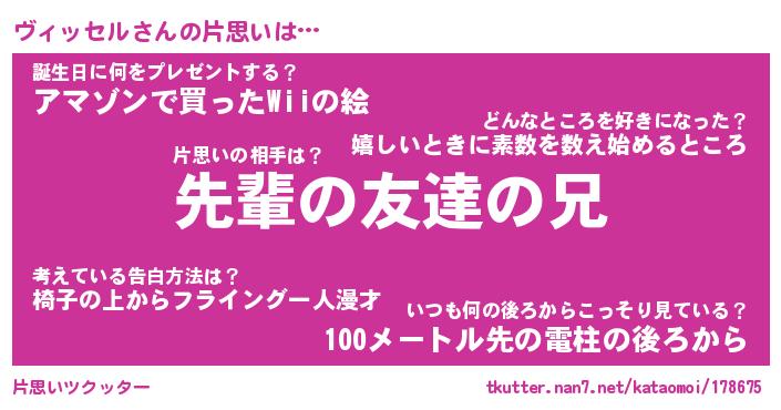 | ファンタジー風あだ名 | 『ヴィフェル』『エターナルヴィッセルー』 |