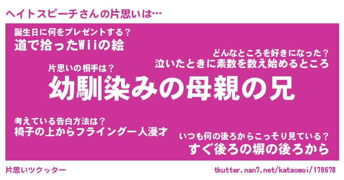 | 意味不明あだ名 | 『ペロリンヘイトスピーチ』 |
