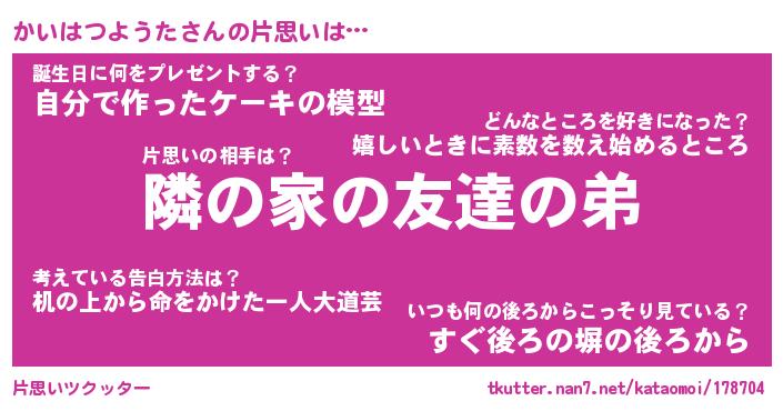 | ヘコむあだ名 | 『かいもー』『つくし』『かいっぺ』 |