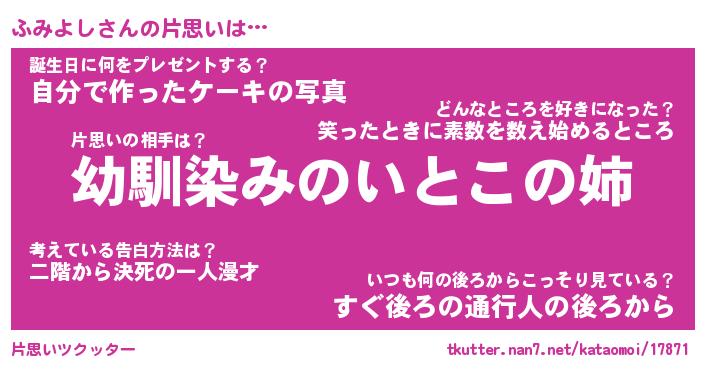 | ヘコむあだ名 | 『ふみにゅー』『つくし』 |