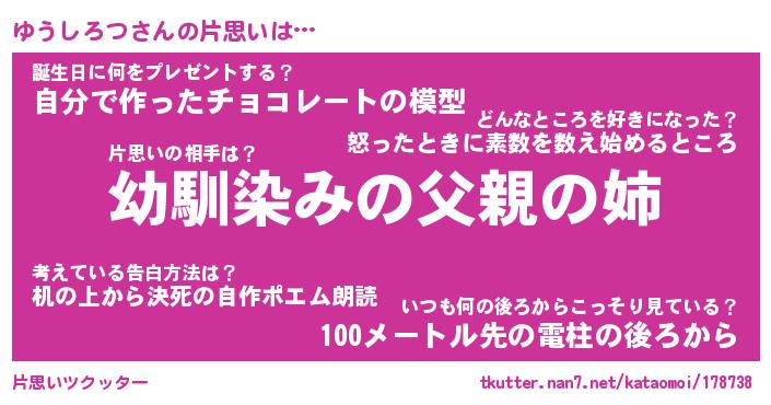 | 女子向けラノベタイトル風あだ名 | 『(仮)ゆうしろつのやんごとなき事情』 |