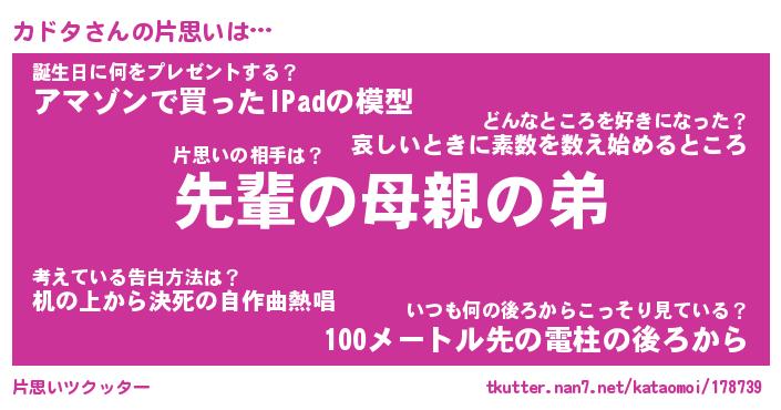 | ポケモン風あだ名 | 『カドチュウ』『カドタダネ』 |