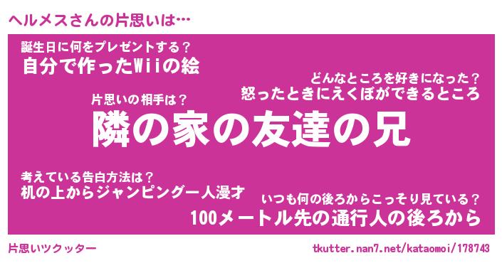 | 意味不明あだ名 | 『ペロリンヘルメス』『永久保存ヘルメス』 |