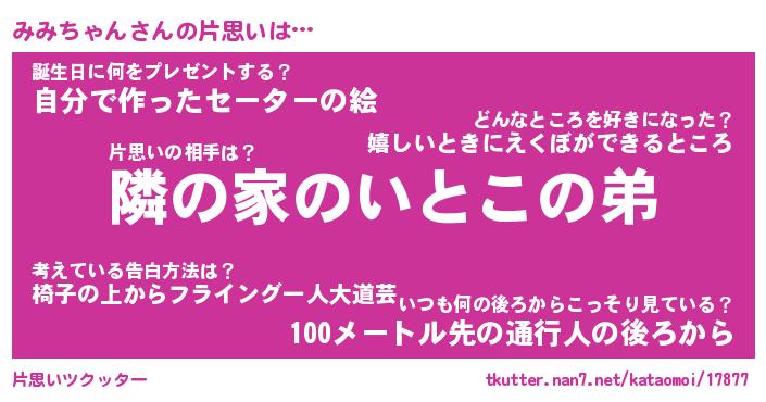 | ヘコむあだ名 | 『みみにゅー』『つくし』 |