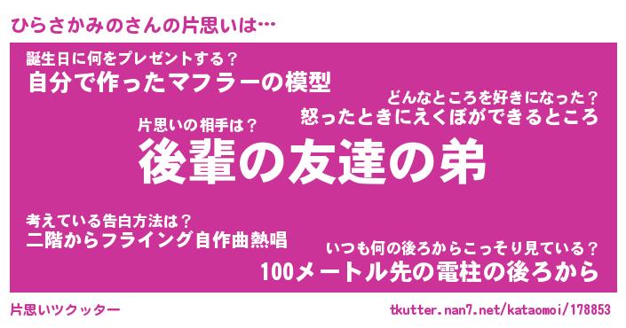 | ヘコむあだ名 | 『ひらっふぃ~』『つくし』『ひらを』 |