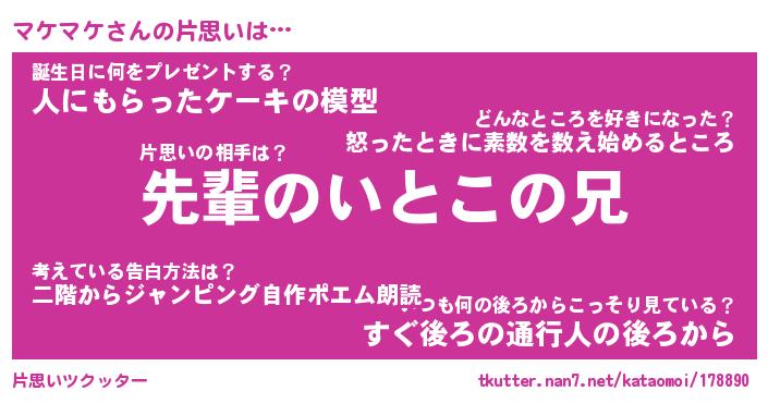 | ファンタジー風あだ名 | 『マケフェル』『エターナルマケマケー』 |