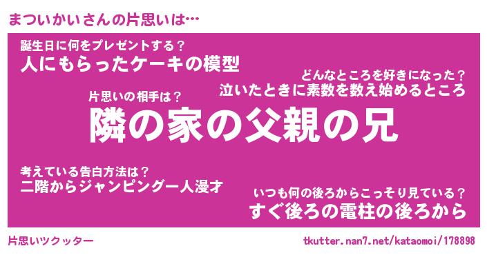 | 胡散臭い通販商品みたいなあだ名 | 『モテモテ間違いなし水晶球…その名も「まついかい」』 |