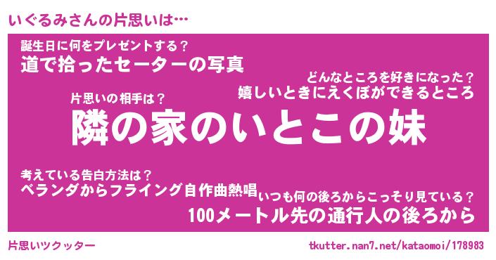 | ヘコむあだ名 | 『いぐにゅー』『牛乳』『いぐを』 |