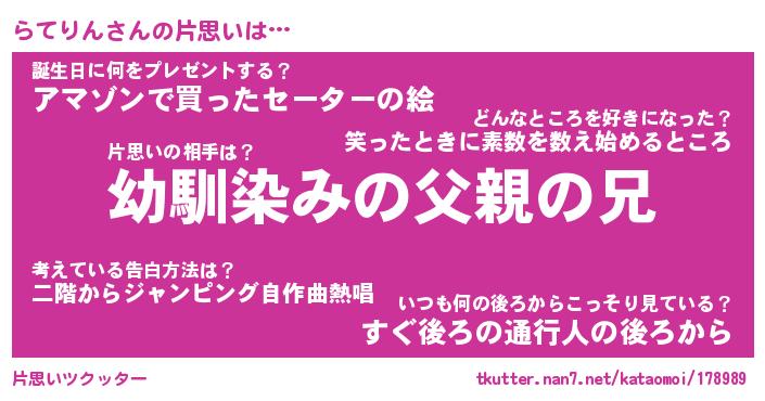 | 男性向けラノベタイトル風あだ名 | 『らてりんの憂鬱』 |