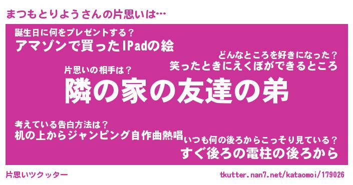 | ヘコむあだ名 | 『まつもー』『なまこ酢』『まつお』 |