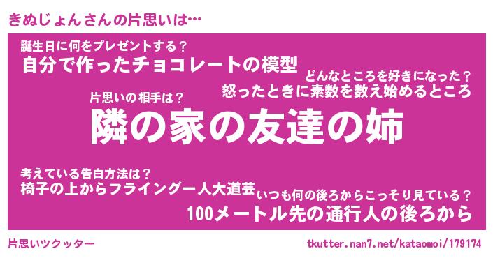 | ヘコむあだ名 | 『きぬっふぃ~』『つくし』 |
