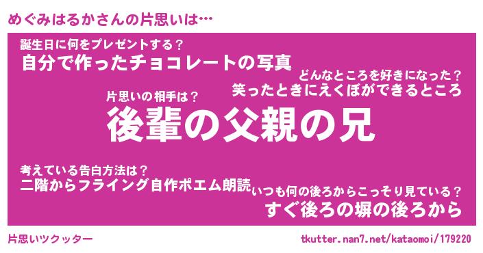 | ヘコむあだ名 | 『めぐにゅー』『牛乳』『めぐお』 |