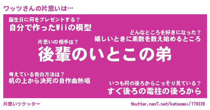 | ヘコむあだ名 | 『ワッもー』『つくし』『ワッを』 |