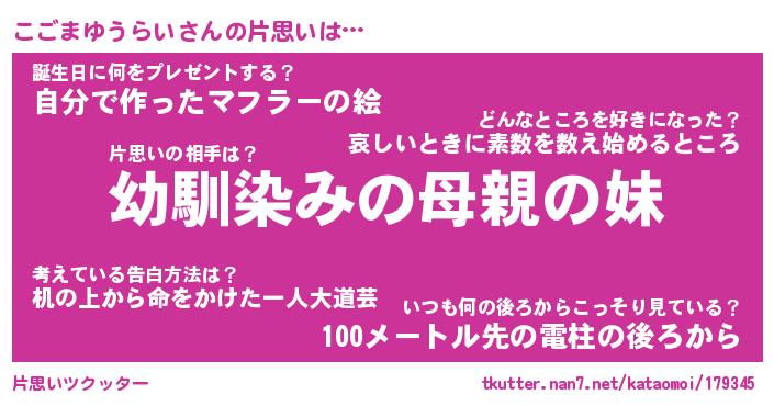 | 男性向けラノベタイトル風あだ名 | 『こごまゆうらいの憂鬱』 |