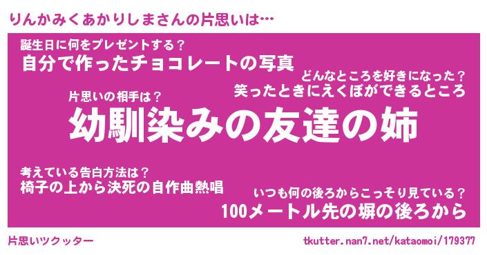 | 伝説のあだ名 | 『伝説のスナイパーりんかみくあかりしま』 |