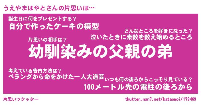 | 恥ずかしいあだ名 | 『プリティーうえやまはやと』『うえちん』 |