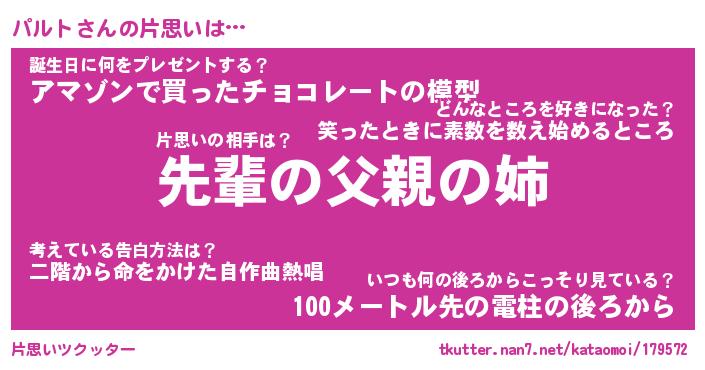 | 男性向けラノベタイトル風あだ名 | 『パルトの憂鬱』 |