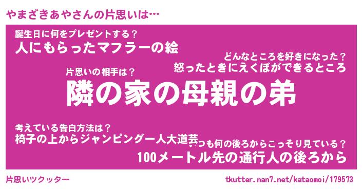 | 胡散臭い通販商品みたいなあだ名 | 『必ず成功するブレスレット…その名も「やまざきあや」』 |