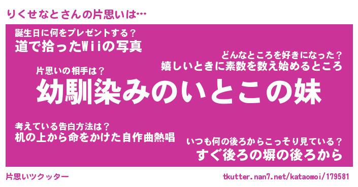 | 胡散臭い通販商品みたいなあだ名 | 『必ず成功する水晶球…その名も「りくせなと」』 |