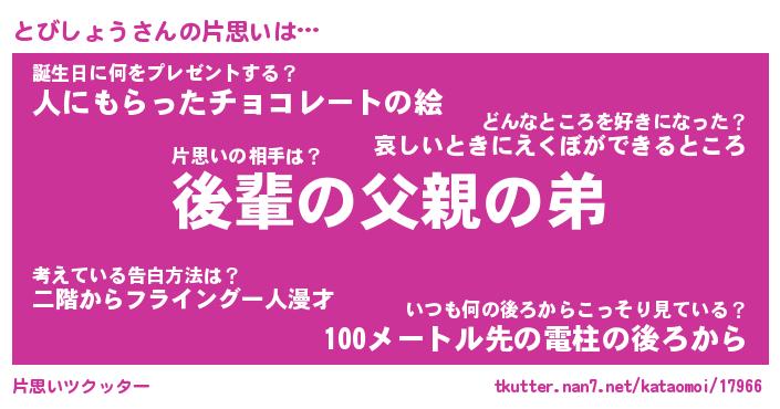| 胡散臭い通販商品みたいなあだ名 | 『モテモテ間違いなしブレスレット…その名も「とびしょう」』 |