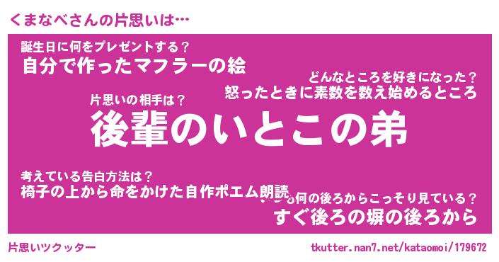 | ヘコむあだ名 | 『くまもー』『つくし』『くま太郎』 |