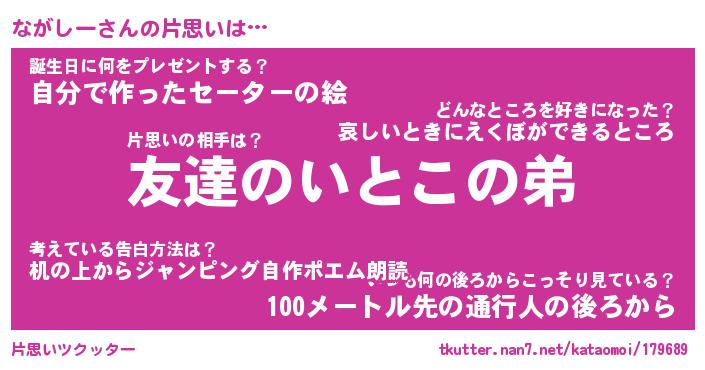 | 意味不明あだ名 | 『ペロリンながしー』『永久保存ながしー』 |