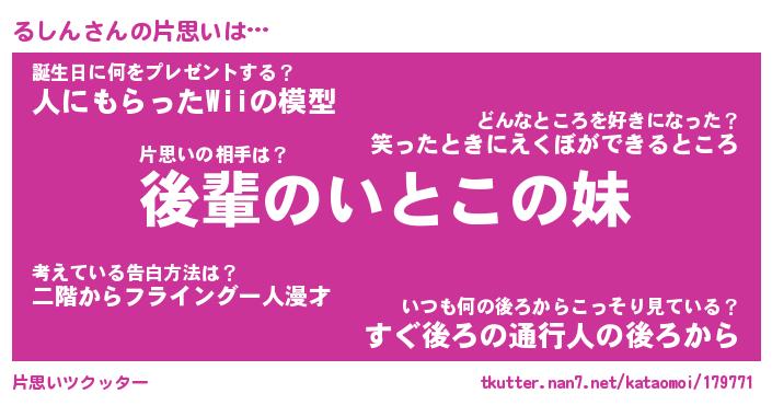 | ヘコむあだ名 | 『るしにゅー』『酢こんぶ』 |