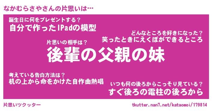| ヒーロー風カッコイイあだ名 | 『スーパーナカムラサヤ』『炎刃騎士ナカ』 |