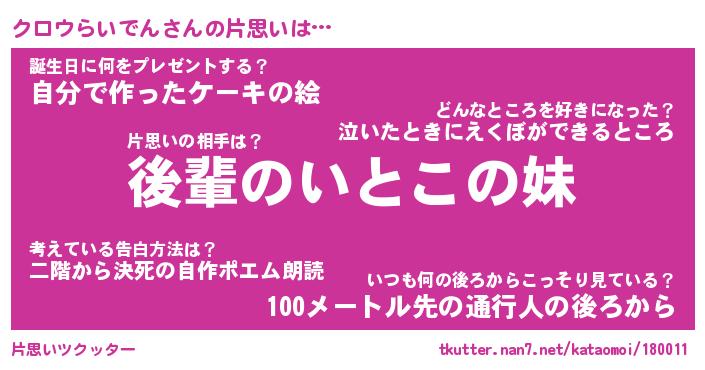 | 2回繰り返すあだ名 | 『クロクロ』『ククロロ』『うろうろ』 |