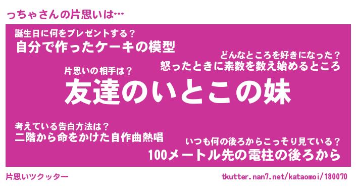 | ヘコむあだ名 | 『っちにゅー』『酢こんぶ』『っちを』 |