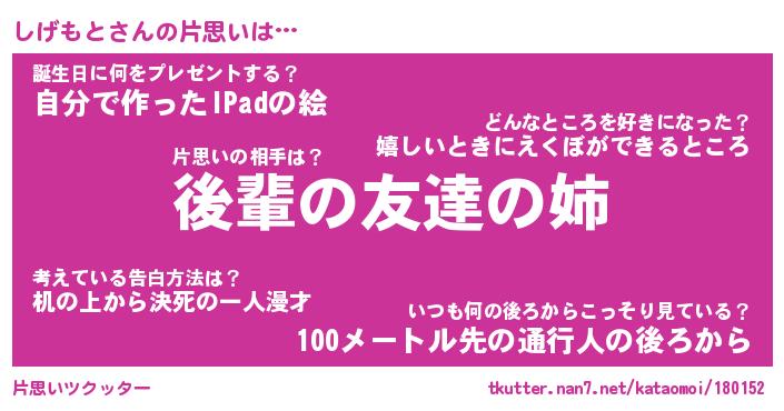| ヘコむあだ名 | 『しげっふぃ~』『牛乳』 |
