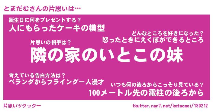 | ヘコむあだ名 | 『とまもー』『牛乳』『とまっぺ』 |