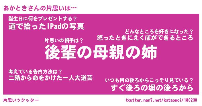 | 意味不明あだ名 | 『ペロリンあかとき』『永久保存あかとき』 |