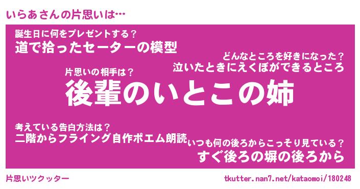 | 胡散臭い通販商品みたいなあだ名 | 『億万長者になれる水晶球…その名も「いらあ」』 |