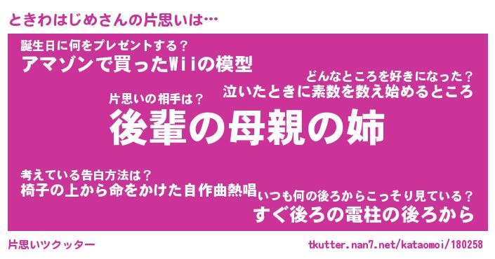 | 胡散臭い通販商品みたいなあだ名 | 『億万長者になれるブレスレット…その名も「ときわはじめ」』 |
