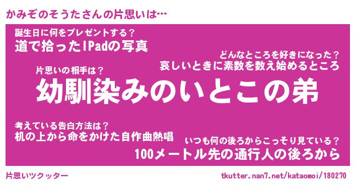 | ヘコむあだ名 | 『かみもー』『牛乳』『かみ太郎』 |