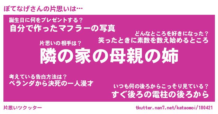| 意味不明あだ名 | 『ペロリンぽてなげ』『永久保存ぽてなげ』 |