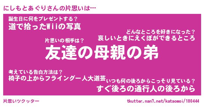 | ヘコむあだ名 | 『にしにー』『豆乳』『にしぷりん』 |