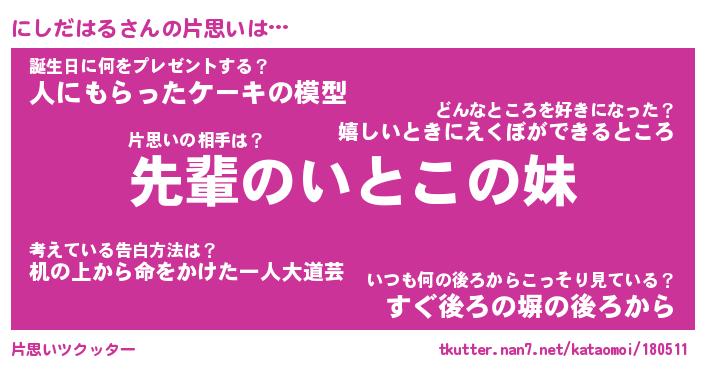 | 男性向けラノベタイトル風あだ名 | 『にしだはるの憂鬱』 |