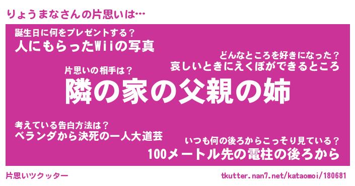 | 胡散臭い通販商品みたいなあだ名 | 『モテモテ間違いなし水晶球…その名も「りょうまな」』 |