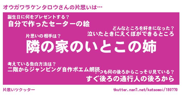 | 胡散臭い通販商品みたいなあだ名 | 『必ず成功する霊験あらたかなお札…その名も「オウガワラケンタロウ」』 |