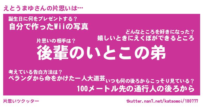 | ファンタジー風あだ名 | 『エトフェル』『エターナルエトウマユー』 |