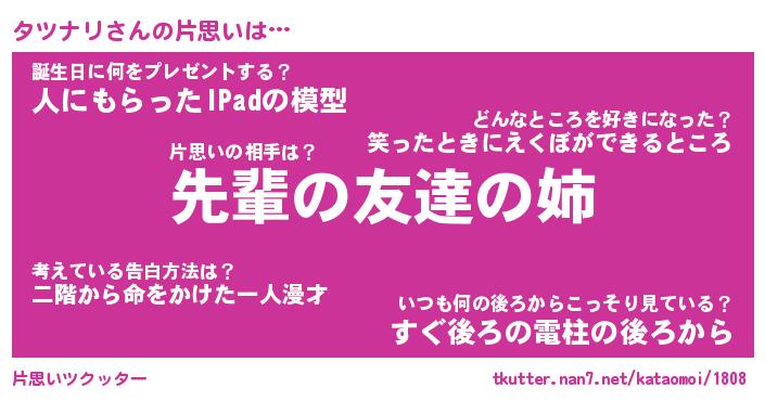 | 男性向けラノベタイトル風あだ名 | 『タツナリの憂鬱』 |