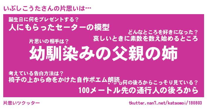 | 胡散臭い通販商品みたいなあだ名 | 『必ず成功するブレスレット…その名も「いぶしこうた」』 |